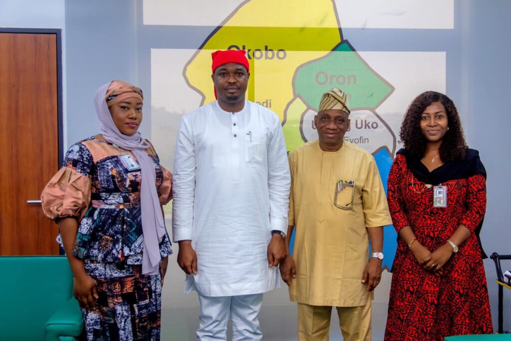 Rep. Martins Esin hosted Mrs. Rinsola Abiola, Senior Special Assistant to the President on Citizenship and Leadership, along with Titi Gbadamosi, Special Assistant to the President on Youth Initiatives, to discuss youth-targeted programs outlined in the 2024 Appropriation Act. He was accompanied by Hon. Joseph Adegbesan, Deputy Chairman of the House of Representatives Committee on Youth Development.